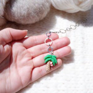 These delicate row counters are great for keeping track of increases and decreases in your knitting. Attach the outermost ring of the row counter at the beginning of the round, then move it one ring closer to the fish the next time you reach the ring.